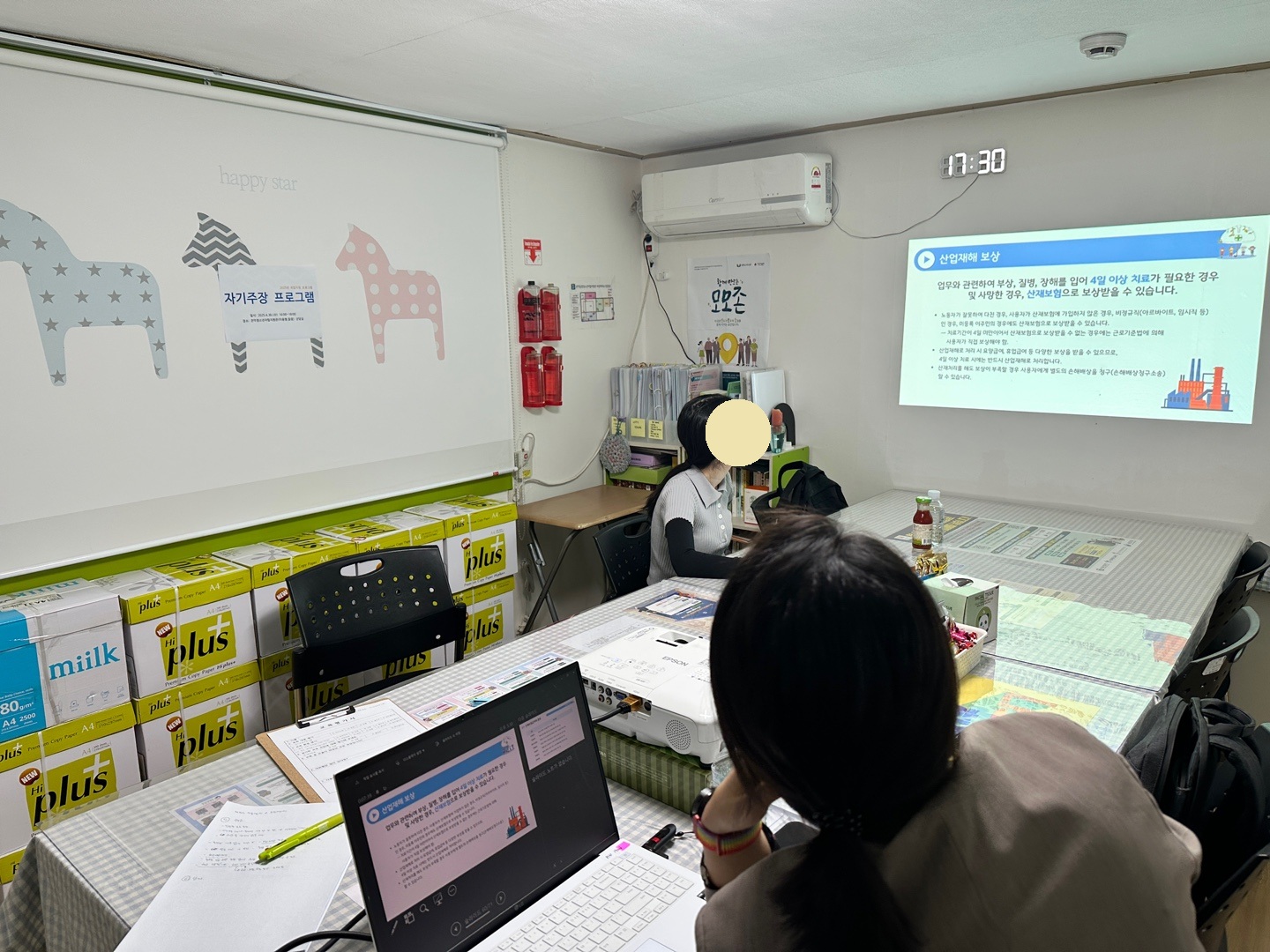 지난 4월, 자기주장 프로그램(노동권 교육)을 진행했습니다! 청소년들이 근로자로서 정당한 권리를 주장할 수 있도록 노무사님과 노동권 교육 및 1:1컨설팅을 진행하고 있습니다. 이번에는 노무사님이 '근로계약서 작성법과 부당처우 대처방법'을 주제로 강의하였습니다. 강의와 함께 근로계약/휴게시간 및 휴가/임금/해고/부당처우/산업재해와 관련해 많이 묻는 질문에 대한 답변이 진행되었습니다. 청소년들이 강의 들으면서 궁금한 점과 평소에 갖고 있던 고민에 대해 물어보는 시간을 가졌습니다. 청소년들은 교육 내용이 세세해서 좋았다, 임금체불 시 정당한 보상을 요구할 수 있다는 걸 알게 되었다, 5인 미만 사업장에는 적용되지 않는 부분을 알게 되었다, 오늘 들은 강의 내용 중 더 알고 싶은 점에 대해 묻는 시간을 갖고 싶다는 소감을 전해주었습니다. 일하고 있는 자립청소년들이 노동권을 알게 되고 평소 궁금했던 점을 알아본 시간이었던 것 같습니다. 청소년들이 나의 권리를 알고 주장할 수 있도록 앞으로도 교육은 계속됩니다. 일하는 모든 청소년들 화이팅입니다! :)